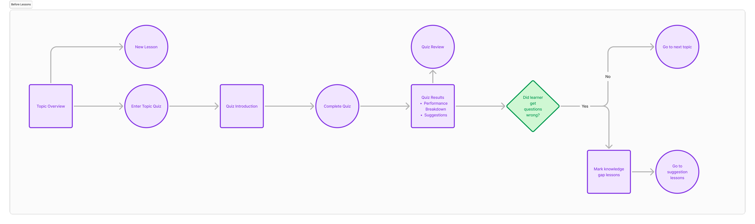 To determine the optimal placement of Topic Quizzes within the learning journey, I developed a working prototype and tested it with students. This was essential to uncover whether Topic Quizzes were a pre-diagnostic tool or a summative learning tool.